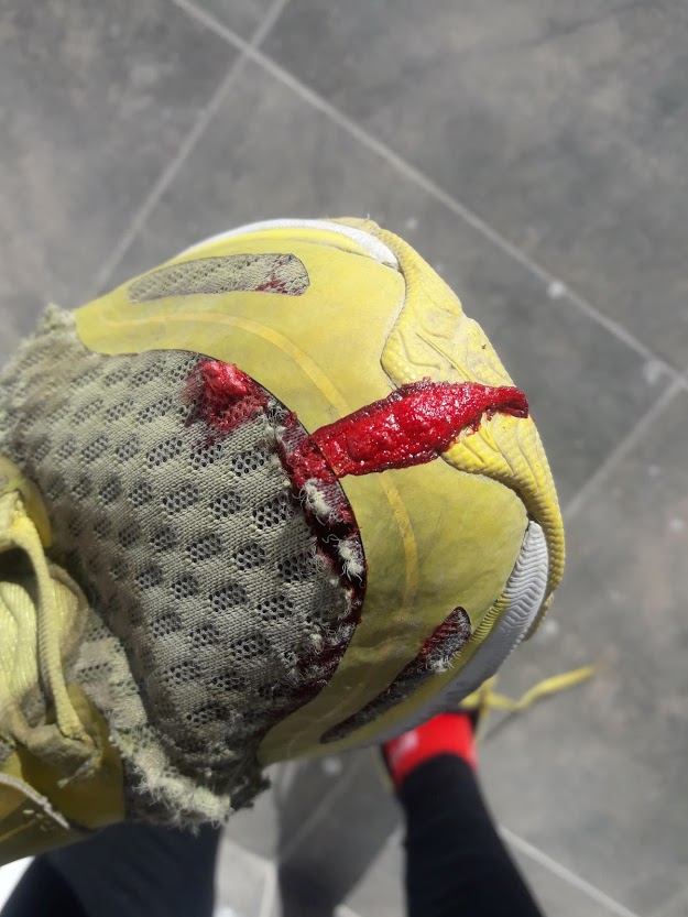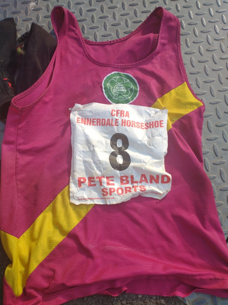 Grass for 3 miles in either direction and I tripped over an invisible tree root. Daydreaming about the the day before before I hit the deck hard, smashing my head, elbow, hip, knee and twisting my metalwork ankle. I limped home, body and pride battered. It was touch and go whether I could run, but when one of her team dropped out,I felt morally obliged).